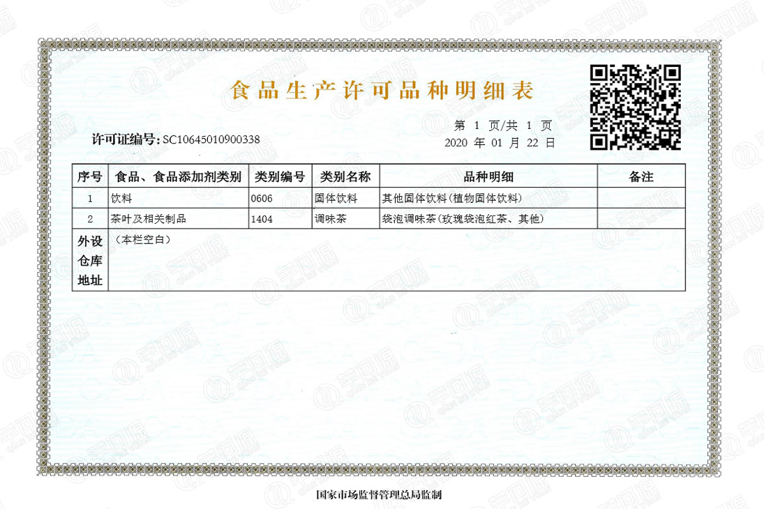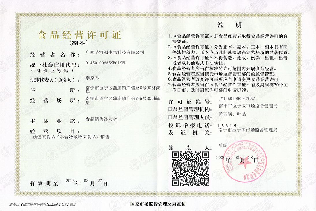 企業營業執照、安全生產標準化三級企業、食品生產許可證、食品經營許可證及食品生產許可明細表